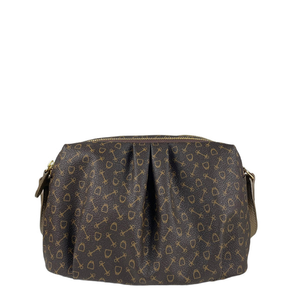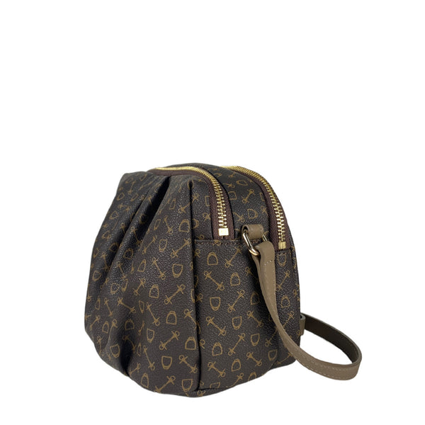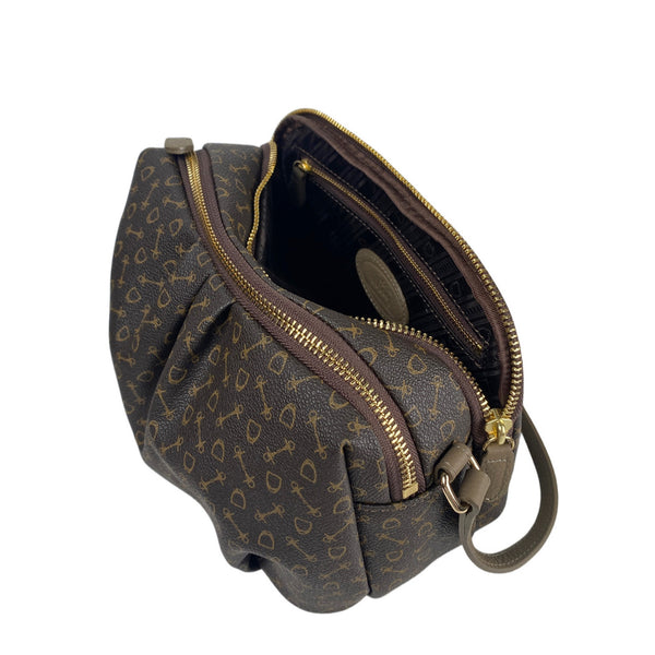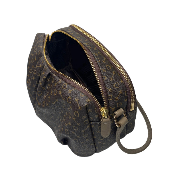 物料: Why Monogram PVC x 牛皮開關: 拉鍊尺寸: 闊 24 cm x 深 12 cm x 高 16 cm 重量: 330 克可調節背帶 (中高約 55 厘米)內格/袋數量: 4