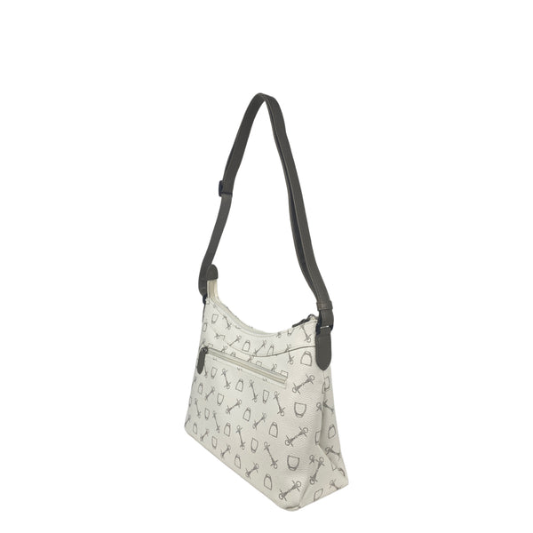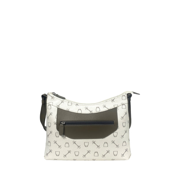 物料: Why Monogram PVC x 牛皮開關: 拉鍊尺寸: 闊 30 cm x 深 10 cm x 高 17 cm 重量: 300 克間格/袋數量: 5可調節背帶: (中高 37 厘米)