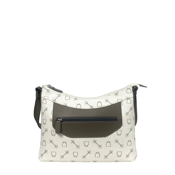 物料: Why Monogram PVC x 牛皮開關: 拉鍊尺寸: 闊 30 cm x 深 10 cm x 高 22 cm 重量: 400 克間格/袋數量: 5可調節背帶: (中高 37 厘米)