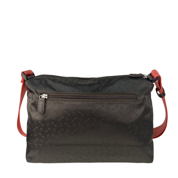 物料: 尼龍 x Why Monogram PVC x 牛皮開關: 拉鍊尺寸: 闊 28 cm x 深 8.5 cm x 高 21.5 cm 重量: 220 克間格/袋數量: 5可調節背帶: 中高約 44 cm