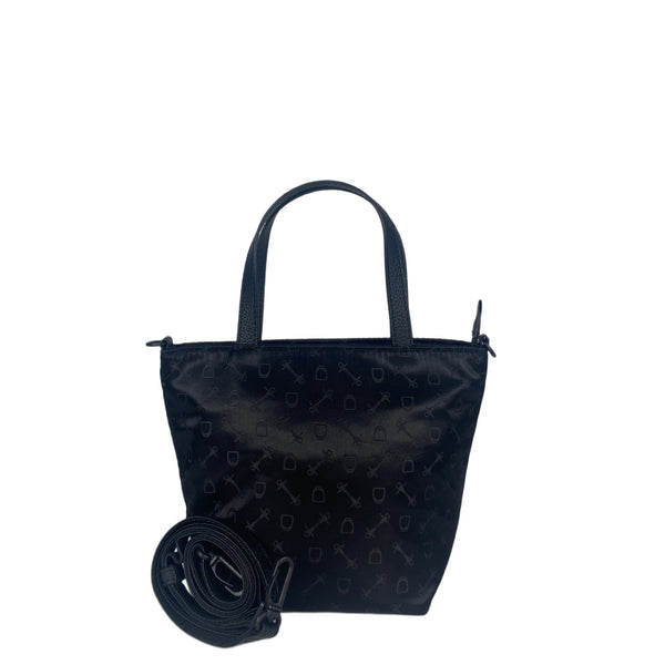 物料: 尼龍 x Why Monogram PVC x 牛皮開關: 拉鍊尺寸: 闊 25 cm x 深 11.5 cm x 高 25.5 cm 重量: 160 克間格/袋數量: 4把手: 中高 11 厘米可調節背帶 (總長約 90 厘米)